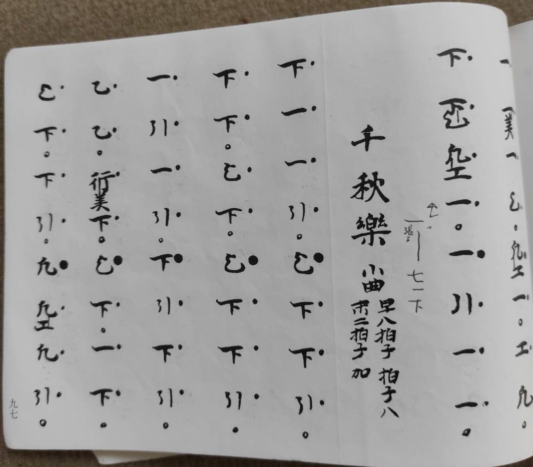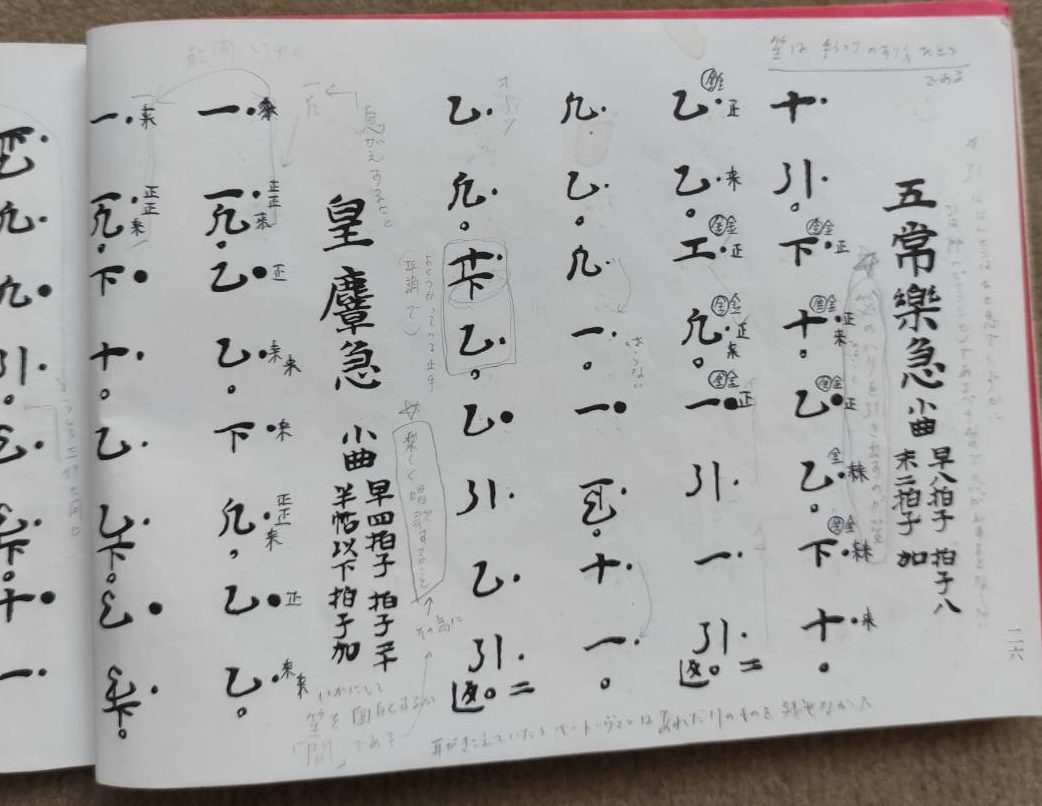 コンテンツへ移動する 表紙裏 内表紙裏 壹越調《音取》p.3 壹越調《賀殿急》p.8 壹越調《賀殿急》《武徳楽》p.9 壹越調《北庭楽》p.10 壹越調《北庭楽》《蘭陵王》p.11 壹越調《蘭陵王》p.12 壹越調《蘭陵王》p.13 壹越調《迦陵頻急》p.14 壹越調《酒胡子》p.15 壹越調《胡飲酒破》《新羅陵王急》p.16 壹越調《新羅陵王急》p.17 平調 音取 p.25 平調《五常楽急》《皇麞急》 p.26 平調《越殿楽》 p.29 平調《皇麞急》 p.27 平調《三臺塩急》 p.28 平調《鶏徳》《老君子》 p.30 平調《老君子》《林歌》 p.31 平調《陪臚》 p.42 雙調 音取 p.51 雙調《春鶯囀颯踏》《春鶯囀入破》p.54 雙調《賀殿急》p.56 雙調《賀殿急》《武徳楽》p.57 雙調《鳥急》p.62 雙調《鳥急》《酒胡子》p.63 雙調《胡飲酒破》《新羅陵王急》p.64 黄鐘調 音取 p.73 黄鐘調《鳥急》p.74 黄鐘調《鳥急》《拾翠楽》《青海波》p.75 黄鐘調《青海波》p.76 黄鐘調《青海波》《越殿楽》p.77 黄鐘調《海青楽》p.78 黄鐘調《海青楽》《平蠻楽》p.79 盤渉調 音取 p.89 盤渉調《輪臺》p.90 盤渉調《輪臺》《青海波》p.91 盤渉調《青海波》p.92 盤渉調《青海波》《越殿楽》p.93 盤渉調《蘇莫者破》p.94 盤渉調《白柱》p.96 盤渉調《白柱》《千秋楽》p.97 盤渉調《竹林楽》p.99 盤渉調《蘇春》《劍氣褌脱》p.101 太食調 音取 p.105 太食調《合歓塩》《長慶子》p.106 太食調《長慶子》p.107 太食調《還城楽》p.113 太食調《還城楽》p.114 太食調《傾盃楽急》p.116 太食調《傾盃楽急》p.117